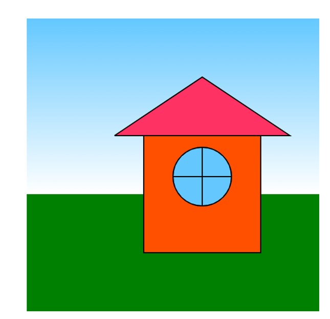 次に家を描きます。壁、屋根、窓をそれぞれ描いていきます。
