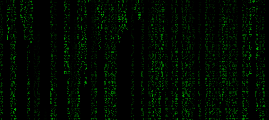 今回は、映画「マトリックス」風のコードの雨が流れる画面を作ってみました。