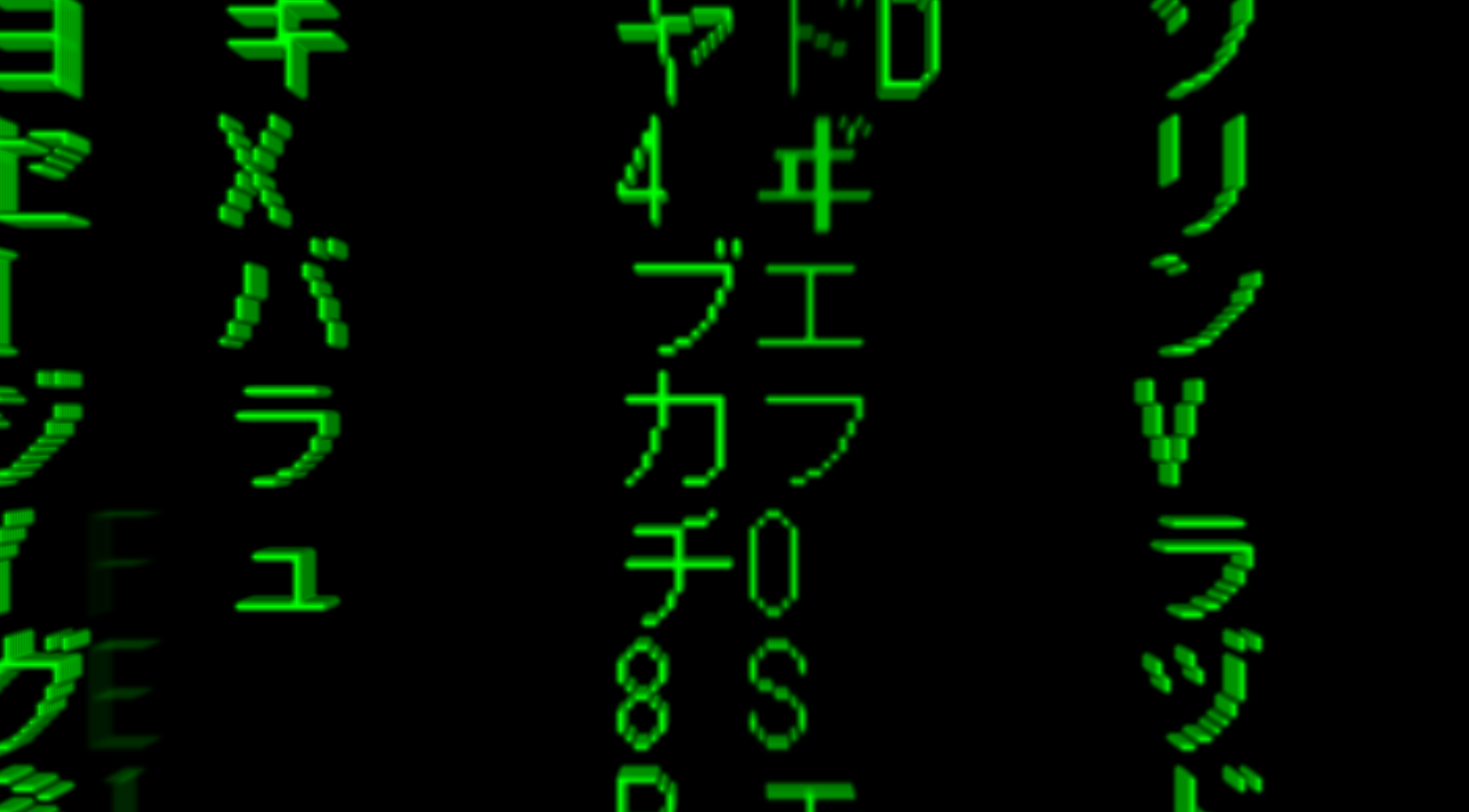 前回作った、映画「マトリックス」風のコードの雨が流れる画面に、「Three.js」を用いて3Dのズームを加えてみました!